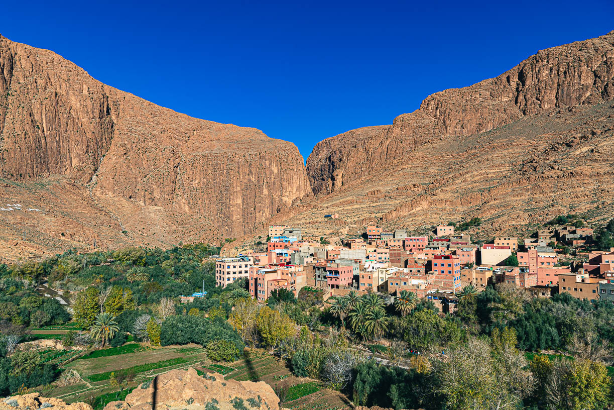Located northeast of Marrakech, the Aït Bougmez Valley is one of Morocco’s most spectacular yet least-visited destinations. Known as the “Happy Valley” for its serene atmosphere and villages nestled among terraced fields and snow-capped peaks, it’s an ideal base for one or multi-day treks. From here, trails lead toward Mount M’Goun (4,071 m), the country’s second-highest peak, as well as hidden Amazigh villages where time seems to stand still.