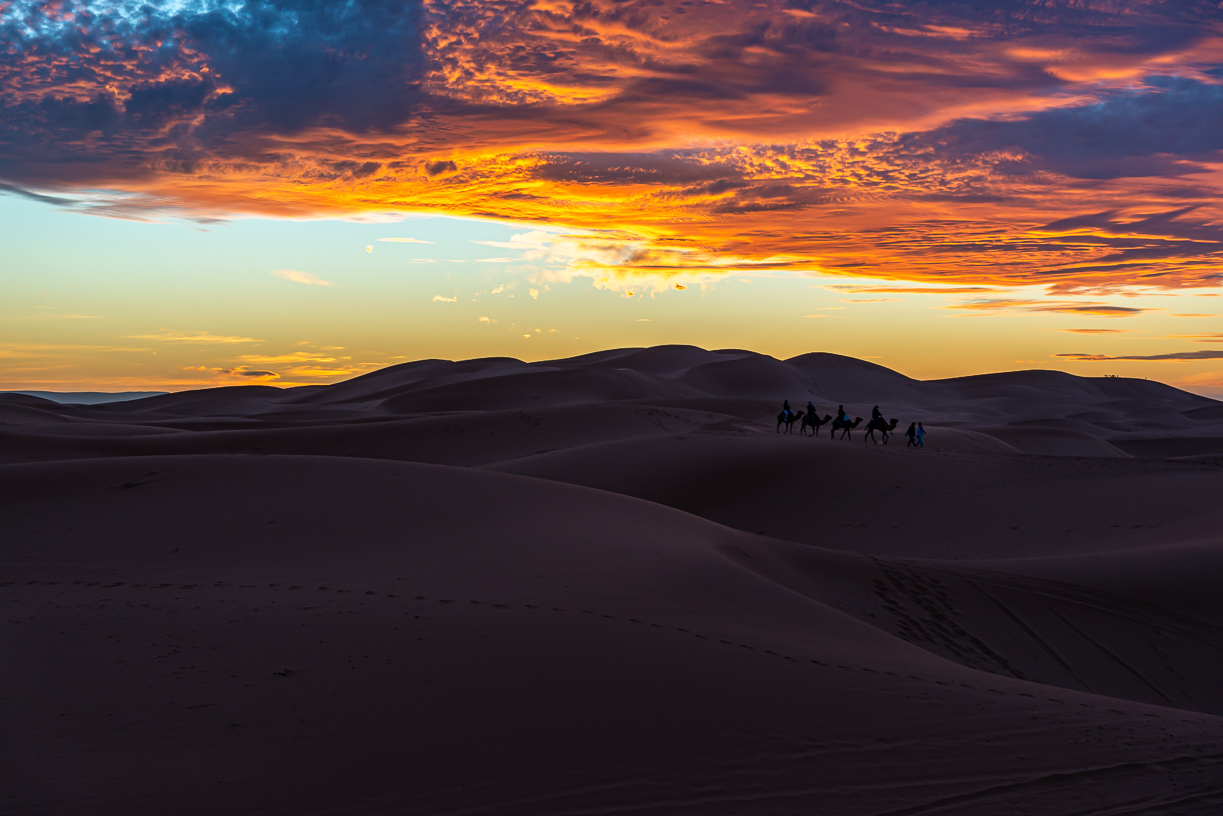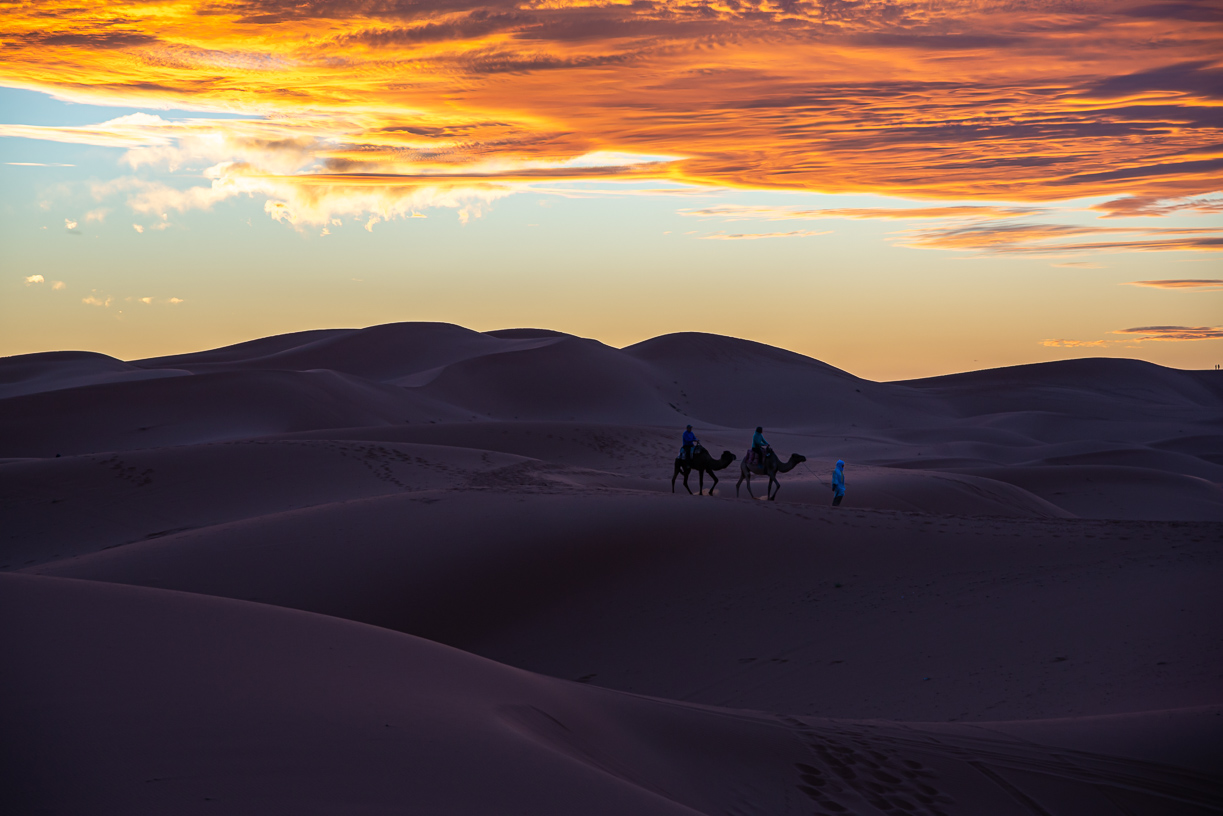 This journey will take you along the ancient caravan routes, across the Sahara Desert and its oases from Marrakech to Fez and beyond; rom the foothills of the Atlas Mountains to the endless sands of the desert, you will follow in the footsteps of the Berber nomads, through mountains, dunes, and villages hidden among the rocks.