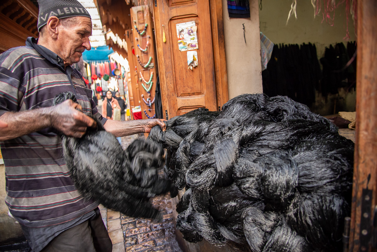 The next day stepping into the souqs of Fez is to enter a living museum of craftsmanship. Unlike tourist markets elsewhere, these alleys are working spaces where traditions are alive. Here, artisans shape copper into glowing trays, weave fine brocades on wooden looms, and dye wool in vats of vibrant saffron, indigo, and henna.